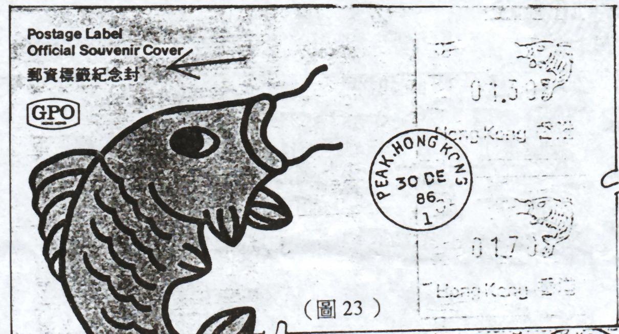 . 7. 漏背景圖案 — 一九八八年 , 龍年郵資標籤在中環總局的售賣機上曾出售過一種沒有背景圖案的標籤 . |
