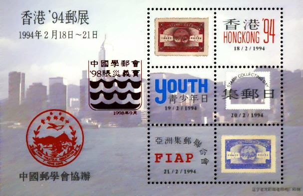 - 九八年十月一日至四日 , 由香港郵學會 , 中國郵學會及尖沙咀郵學會聯合舉辦 , 並由亞洲集郵聯合會贊助的香港九八郵展假座香港大會堂展出 . 郵政署為紀念這次盛事 , 設計了一款紀念封 , 啟用特別紀念郵戳和方型紀念印 . | ||